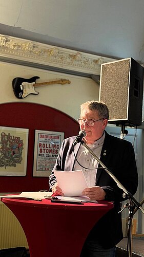 In diesem Jahr haben sich 145 Gäste in der Kulturwerkstatt AuKrug versammelt. Die musikalische Eröffnung übernahm die Aukrug Session-Band gefolgt von der offiziellen Eröffnung durch Bürgermeister Joachim Rehder. Nach einem vielversprechenden Ausblick auf das Jahr 2026 gab es unter lautem Applaus die Info, dass die Gemeinde einen neuen Pächter für die Kulturwerkstatt gefunden hat: Steffan Möller übernimmt ab dem 1. Februar das Zepter. Nach einer kurzweiligen plattdeutschen Geschichte von Jörgen Oerter ging es mit Rübenmus-Buffet offiziell in die Genussphase über.
